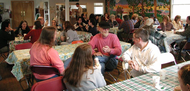 We have level campsites in the woods behind the Community Center and car camping in the surrounding meadow. Access to showers and bathrooms included. (Back to top)