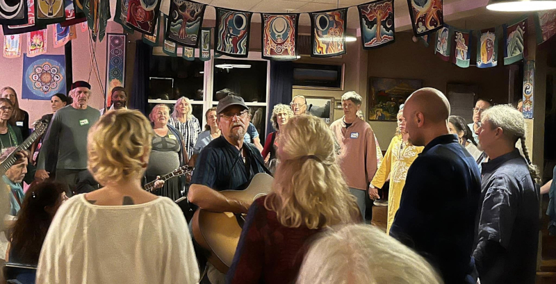 Your host for this event, Douglas Stevenson: Douglas has been singing and playing music since junior high. He has been a member of The Farm Community for over 50 years, leading Kirtan and then Dances there for the last 10 years. He is a Board member of DUP International.